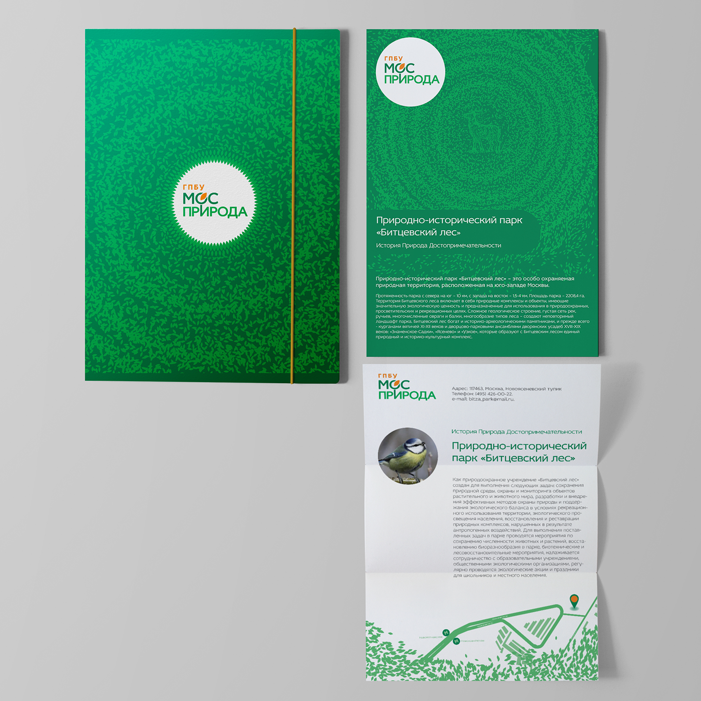 Creating a corporate identity for the state budget institution Mospriroda the city of Moscow. The logo reflects the image of Moscow and environmental friendliness. Simple shapes and ease of reading meanings create an effective poster style.